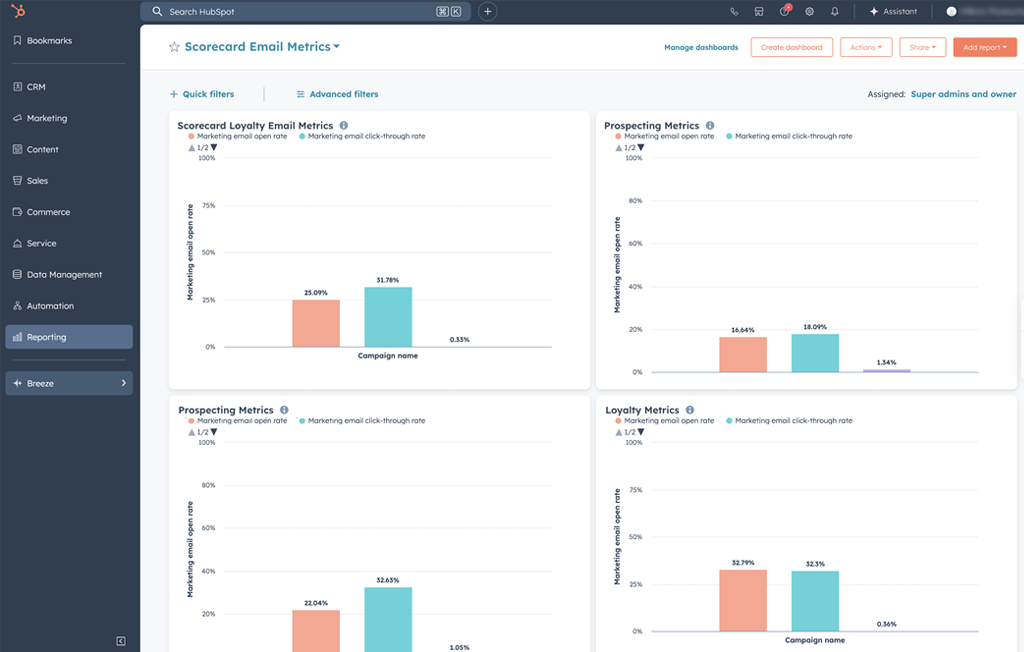 HubSpot has grown into a customer platform that brings marketing, sales, service, content, commerce, and data together in one place. The Smart CRM sits at the center, connecting tools across the platform. In addition to storing customer data, HubSpot now supports everything from content creation to email campaigns, blogging, social media, and more.